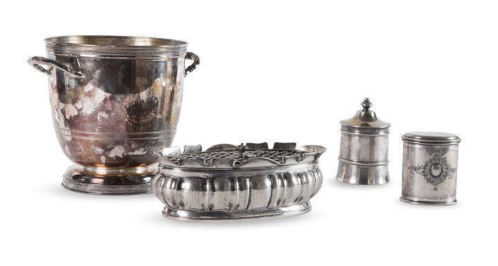 Lotto 694 | LOTTO DI QUATTRO OGGETTI IN ARGENTO Peso gr 2090 composto da un...