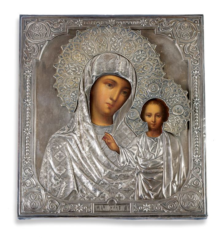 Lotto 722 | ICONA H. cm 36x31 Russia, XIX secolo, raffigurante la Vergine con il Bambino....