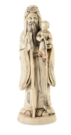 STATUINA IN AVORIO Raffigurante anziano con fanciullo in braccio H. cm 20