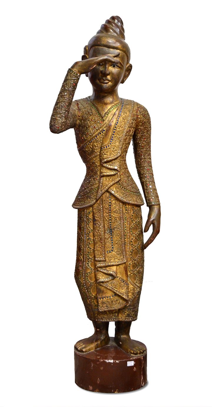 SCULTURA THAILANDESE In legno laccato e intagliato con applicazioni,...