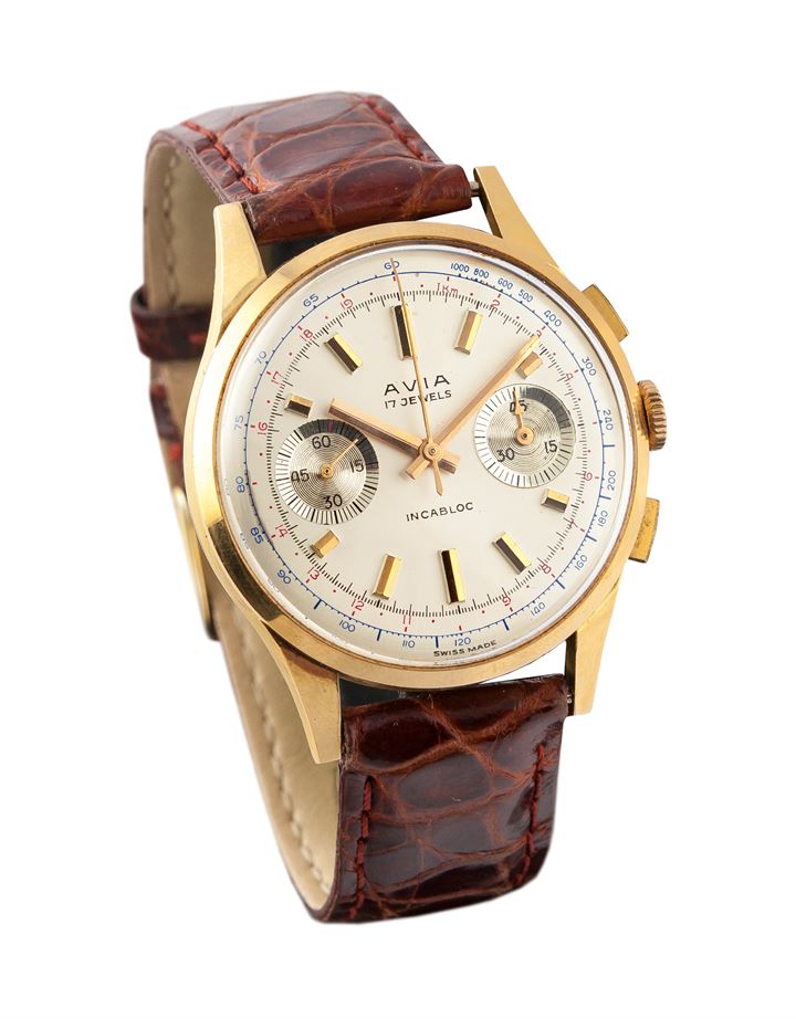 AVIA Cronografo Mod. "Capsulet" a due contatori, anni '60 Diam. 38 Cassa in...