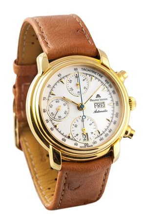MAURICE LACROIX Cronografo a tre contatori, anni '90 Diam. 39 Cassa in...