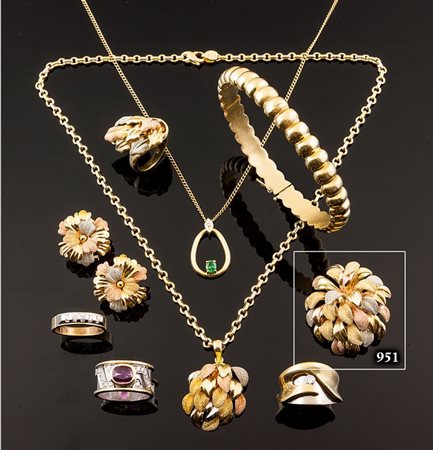SPILLA Peso gr 11,4 nei tre colori dell'oro composta da foglie stilizzate...