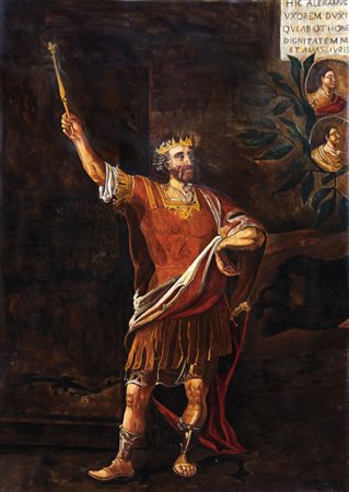 ROBERTO CANTARELLA Allegoria sul marchesato Del Carretto, 2003 olio su carta cm. 70x50, firma in basso a destra, pubblicato sul catalogo della mostra "Il Marchesato ritrovato, Aleramo, un albero, venti autori", tenutasi dal 30 maggio al 5 settembre 2004 presso il Teatro Aycardi (Finalborgo), pagina 50.