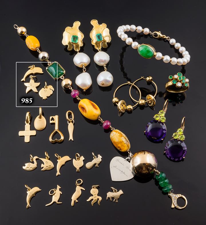 Lotto di tre ciondoli firmati "Pomellato", linea "Dodo", composto da una stella, un delfino e un dodo