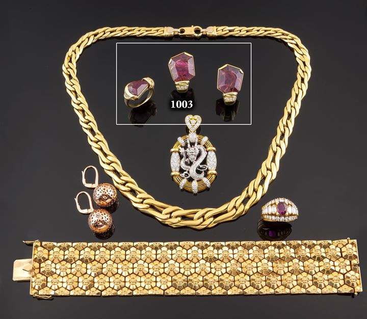Lotto 1003 | MISANI Peso gr 26,5 Demi-parure in oro giallo, firmata "Misani" composta da...