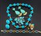 composto da un filo di sfere di turchesi dal diam 16,2 e 16,3 mm alternate a sfere sfaccettate in oro giallo