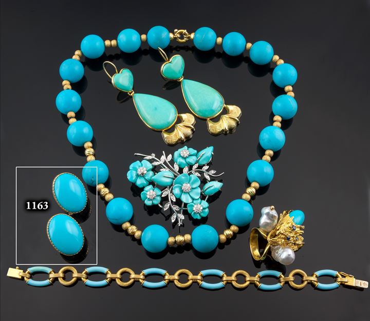 Lotto 1163 | COPPIA DI ORECCHINI Peso gr 14,6 in oro giallo con due turchesi ovali