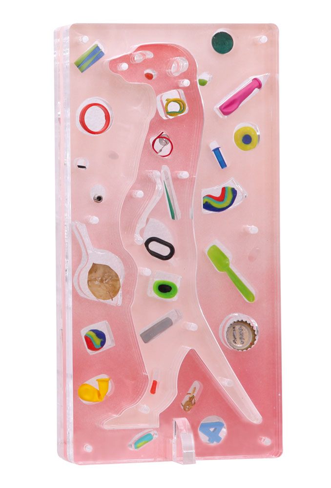 RENZO NUCARA Crema 1948 Stratofilm suricato, 209 assemblaggio di plexiglass, resine e oggetti cm. 40x20x6, firma entro tappo in basso a destra, dichiarazione d'autenticità e archivio dell'artista su foto.
