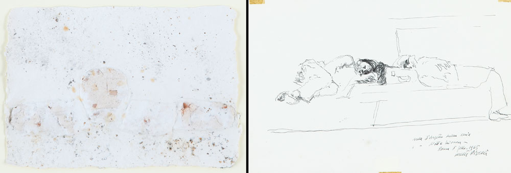 AUTORI VARI GRAZIANO POMPILI Senza titolo, 1990 tecnica mista su carta cm. 18,5x27,5, firma e anno al retro. WALTER PIACESI Sala d'aspetto nella mia notte bianca, 1965 china su carta cm. 19,5x29,5; firma, titolo e anno in basso a destra.