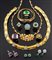in oro giallo con gambo in onice (danneggiato) sommità a cupola, con smeraldo cabochon di ct 6,5 ca