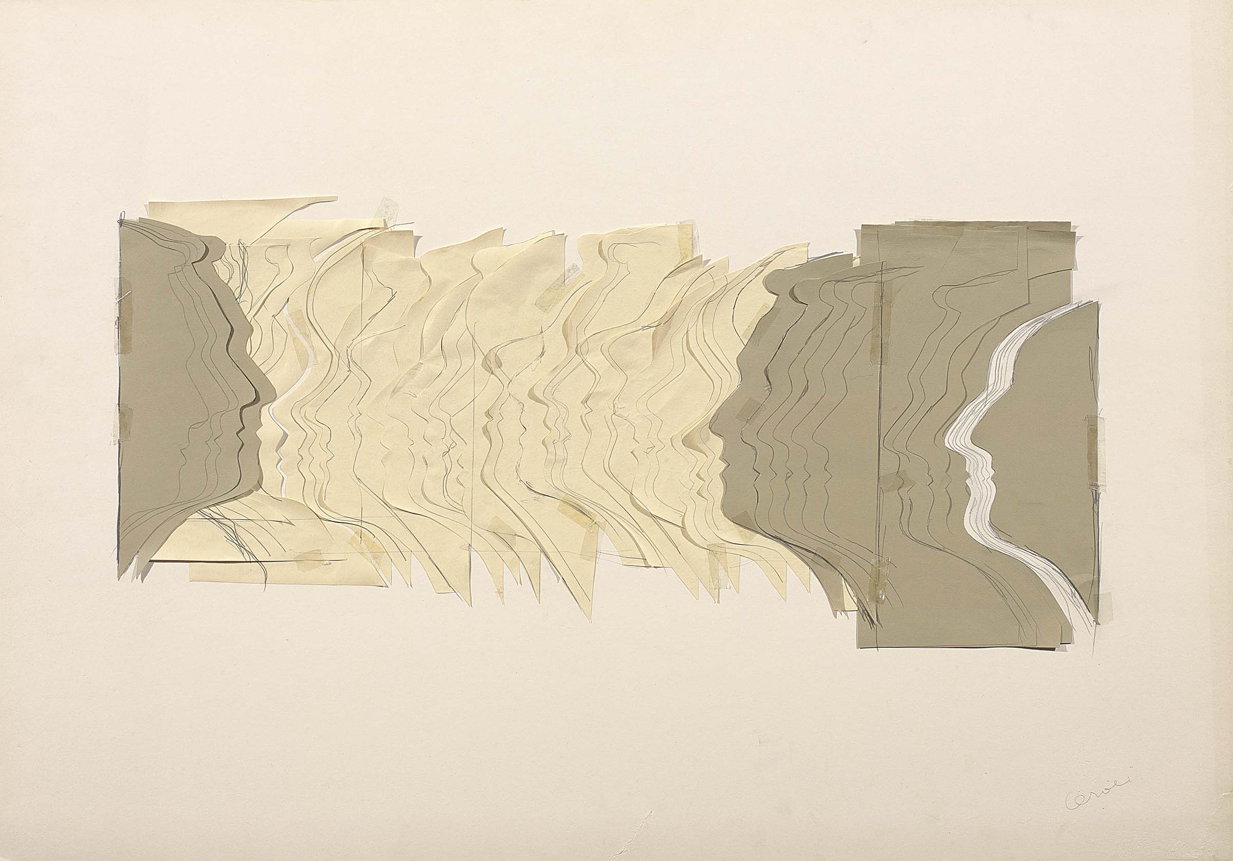 Mario Ceroli Castelfrentano (Ch) 1938 Profili Collage e tecnica mista su cartone, cm. 71,8x103 Firma in basso a destra: Ceroli. Foto autenticata dall'artista.