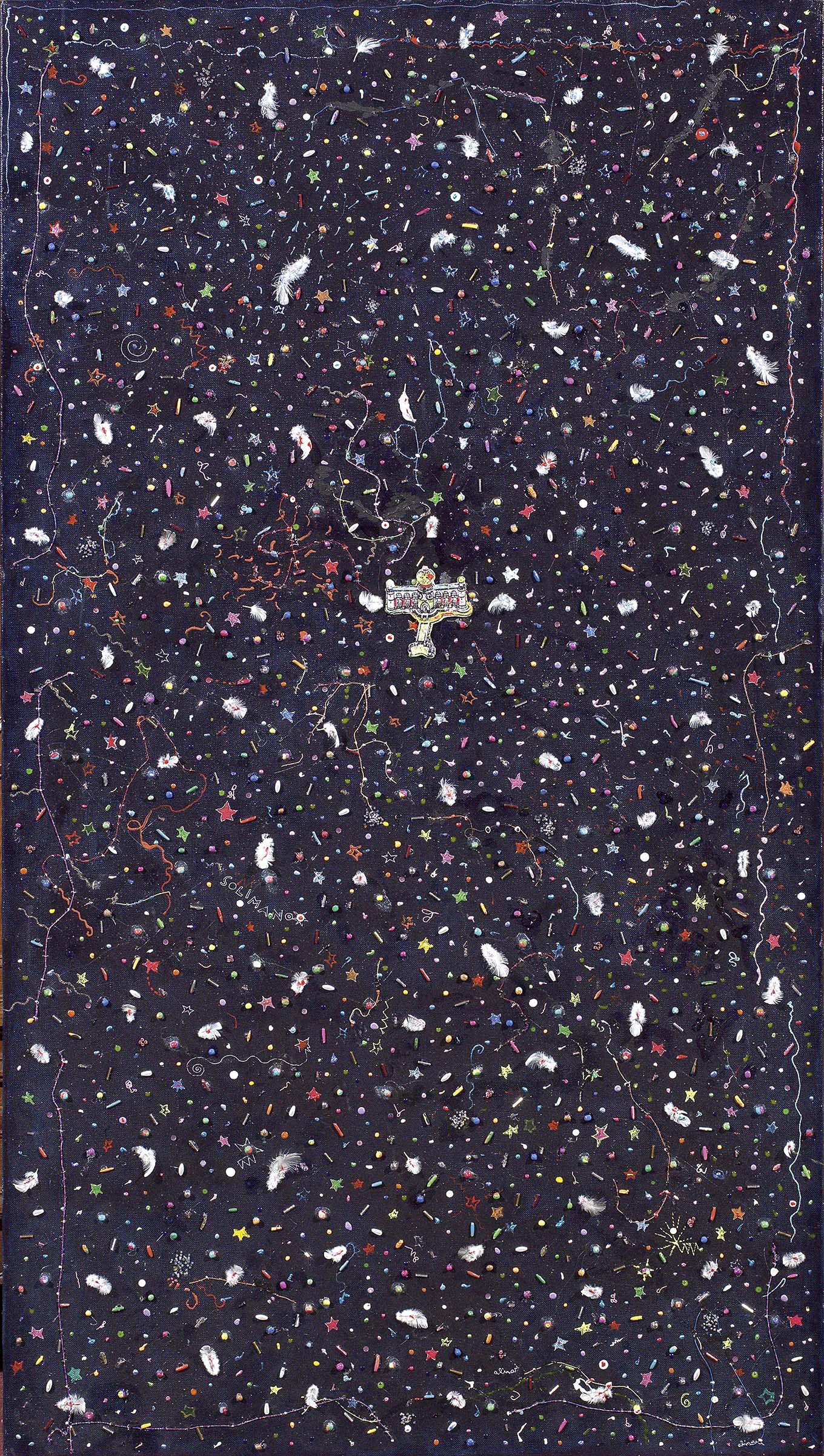 Luca Alinari Firenze 1943 Stelle nere, 1978 Collage e olio su tela, cm. 180,5x100 Firma in basso a destra: Alinari; titolo e data al verso sulla tela: Stelle / nere / '78.