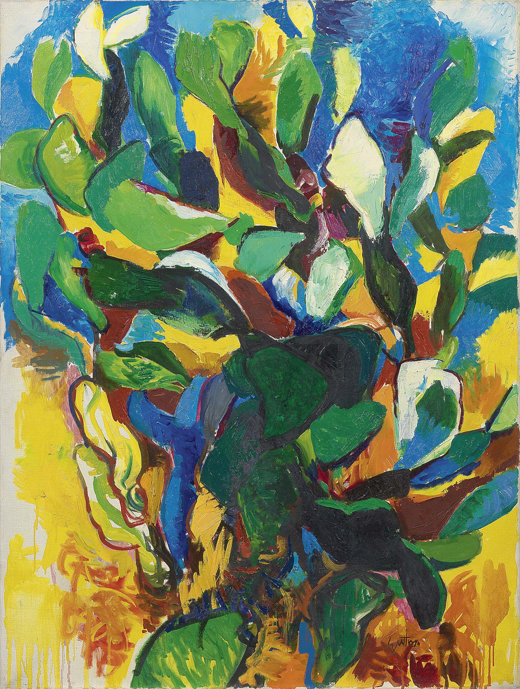 Renato Guttuso Bagheria (Pa) 1912 - Roma 1987 Cactus, 1961 Olio su tela, cm. 100x76 Firma in basso a destra: Guttuso. Foto autenticata dall'artista. Bibliografia Enrico Crispolti, Catalogo ragionato generale dei dipinti di Renato Guttuso, vol. 2, Giorgio Mondadori, Milano, 1984, p. 259, n. 62/111.