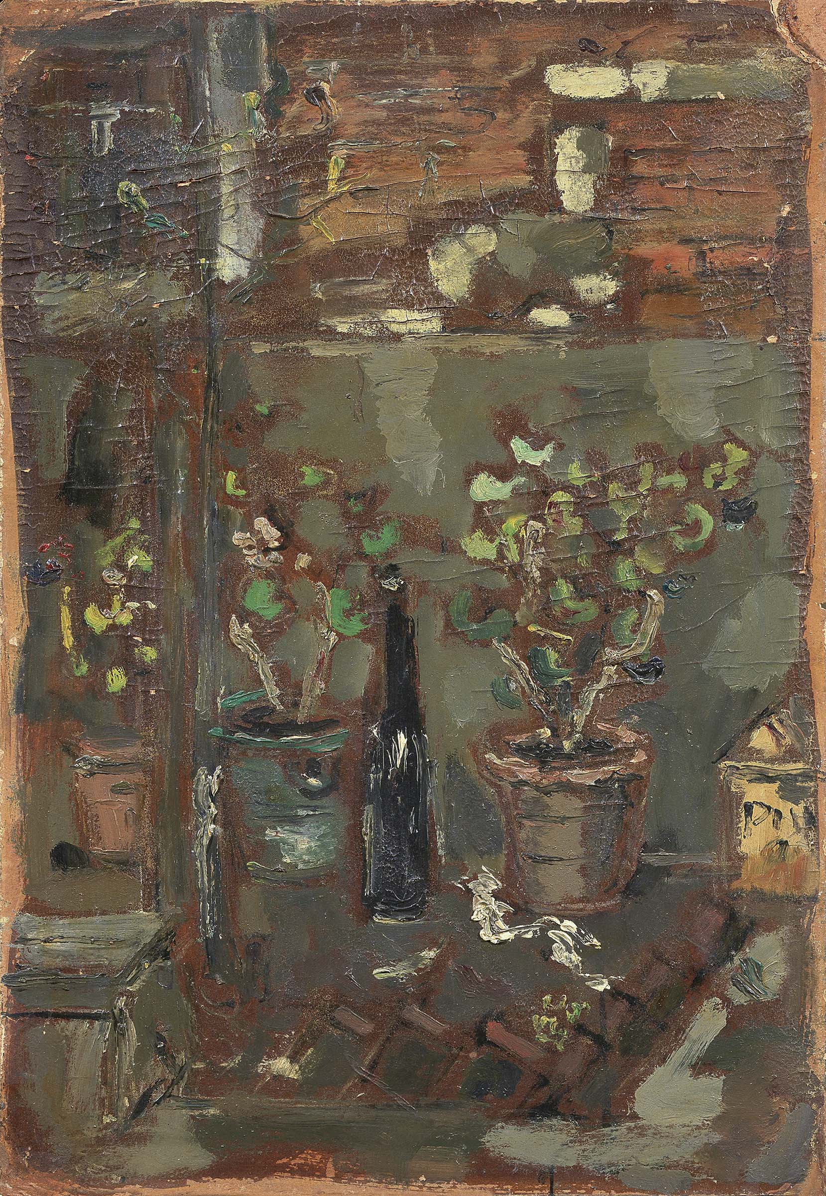 Filippo de Pisis Ferrara 1896 - Milano 1956 Natura morta con bottiglia, 1938 Olio su cartone, cm. 48,5x33,3 Firma in basso sul lato destro: Pisis. Al verso: lettera autografa a Barbaroux: etichetta Galleria dello Scudo / Verona / M. Antologica F. de Pisis 1978-79: etichetta Galleria Bonaparte, Milano, con n. 1536. Storia Galleria dello Scudo, Verona; Collezione privata, Belluno; Collezione privata Esposizioni Filippo de Pisis, Verona, Galleria dello Scudo, 25 novembre 1978 - 7 gennaio 1979, cat. p. n.n., illustrato. Bibliografia Giuliano Briganti, De Pisis. Catalogo generale, tomo primo, opere 1908-1938, con la collaborazione di D. De Angelis, Electa, Milano, 1991, p. 425, n. 1938 11.