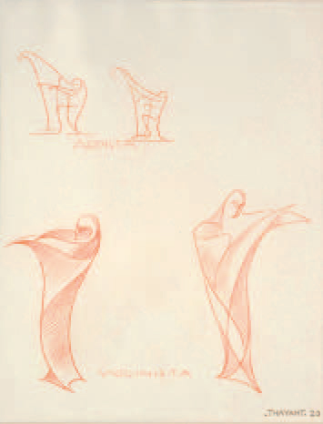 Thayaht Firenze 1893 – Pietrasanta, Lucca 1959 Arpista e Violinista, 1920 matita colorata su carta, cm 29x22,5. Firmato e datato in basso a destra: .THAYAHT. 20 Provenienza: collezione privata. Bibliografia: D. Fonti, Thayaht futurista irregolare, Mart, Ed. Skira, Milano 2005, pagina 135.