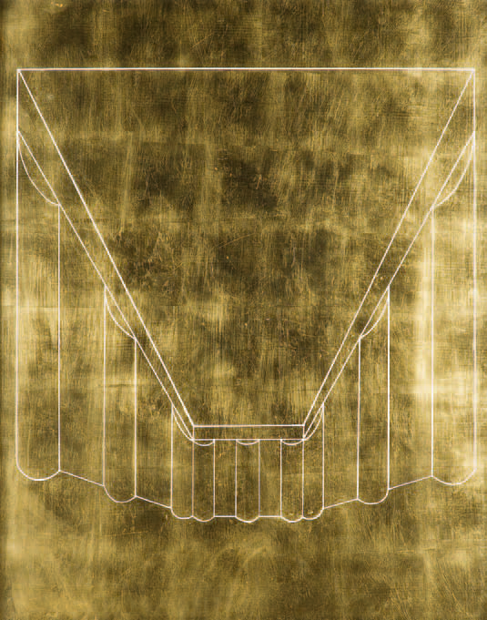 Gino De Dominicis Ancona 1947 – Roma 1998 Prospettiva Rovesciata, 1991 tempera e foglia oro su tavola, cm 120x100. Firmata al verso: De Dominicis Opera registrata presso la Fondazione Archivio Gino De Dominicis.