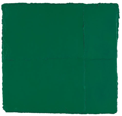 ARMANDO MARROCCO Galatina 08/02/1939 Intreccio, amplesso verde, 1966 pigmento e collante, smalto acrilico su faesite cm. 60x62,2; firma, titolo, anno, tecnica ed etichetta della Galleria Il Cenobio di Milano al retro, dichiarazione d'autenticità e archivio dell'artista su foto, entro teca in plexiglass.