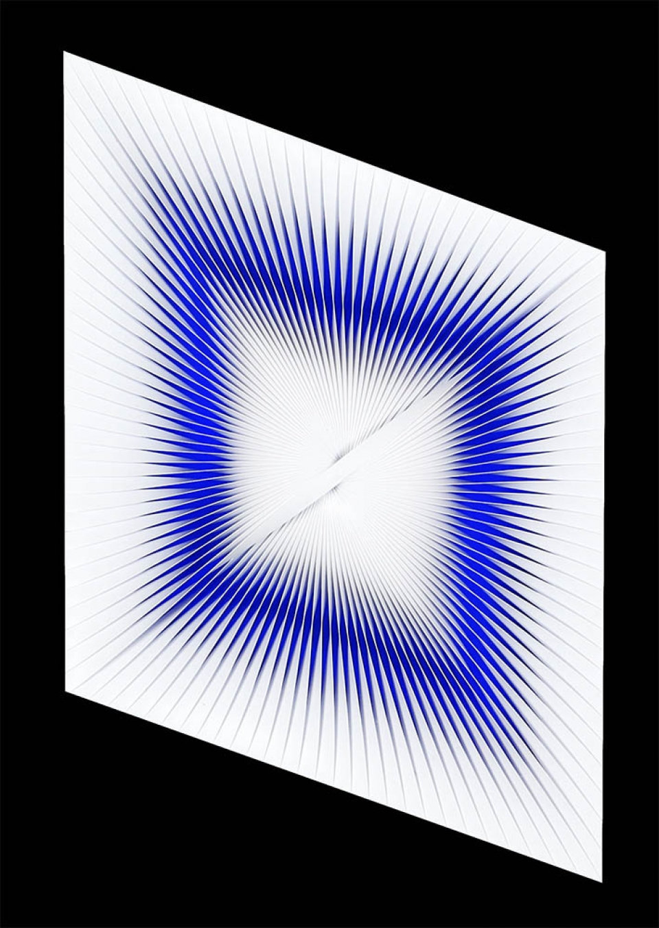 ALBERTO BIASI 1937 " Dinamica del gruppo enne, variante del 1980 ", 1980 Lamelle in PVC, cm. 20 x 18 lati Firmato e datato sul retro Autentica dell'artista su fotografia Prov. Collezione Privata