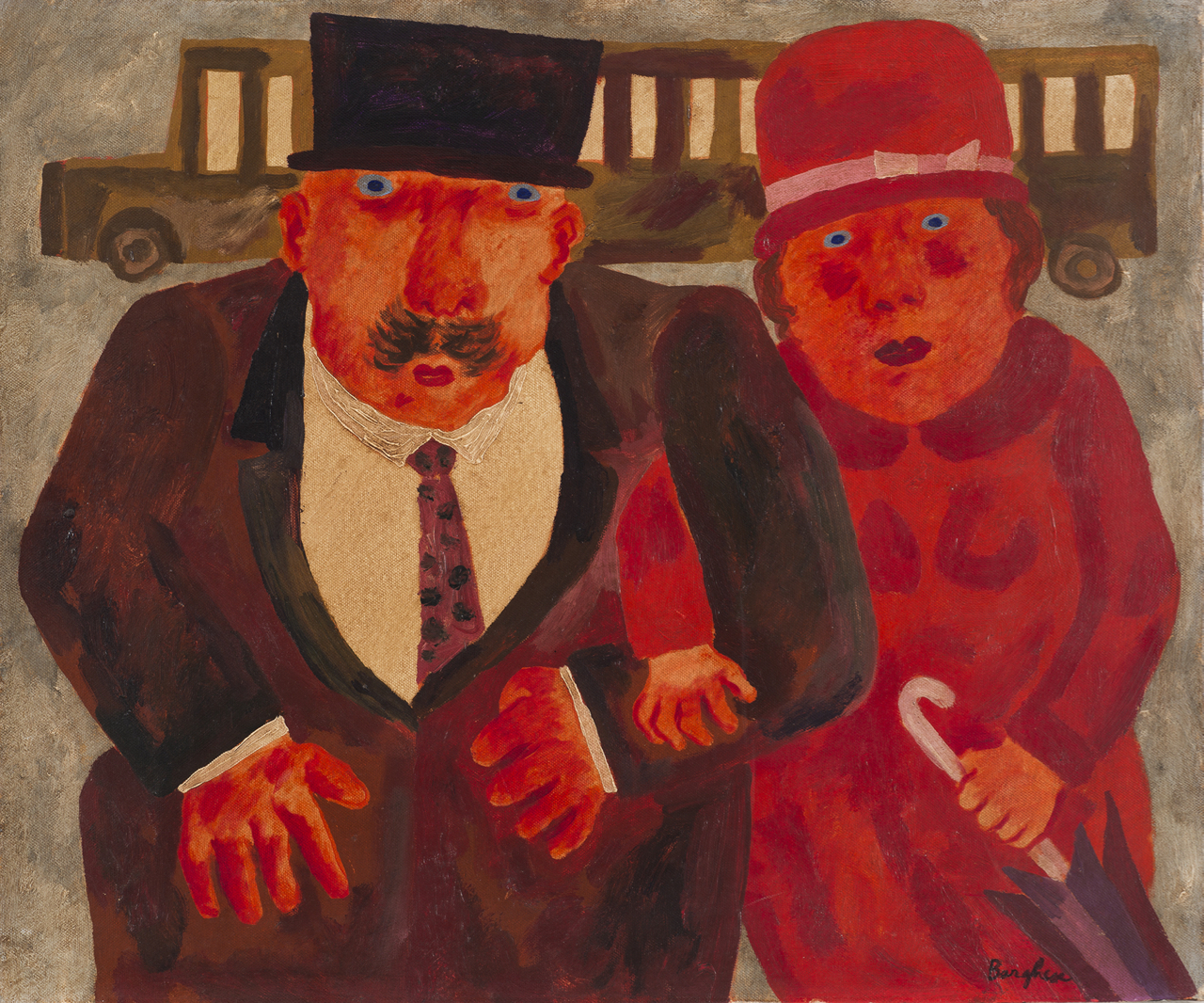 Franz Borghese (1941-2005) Coniugi ed autobus Firmato Borghese in basso a...