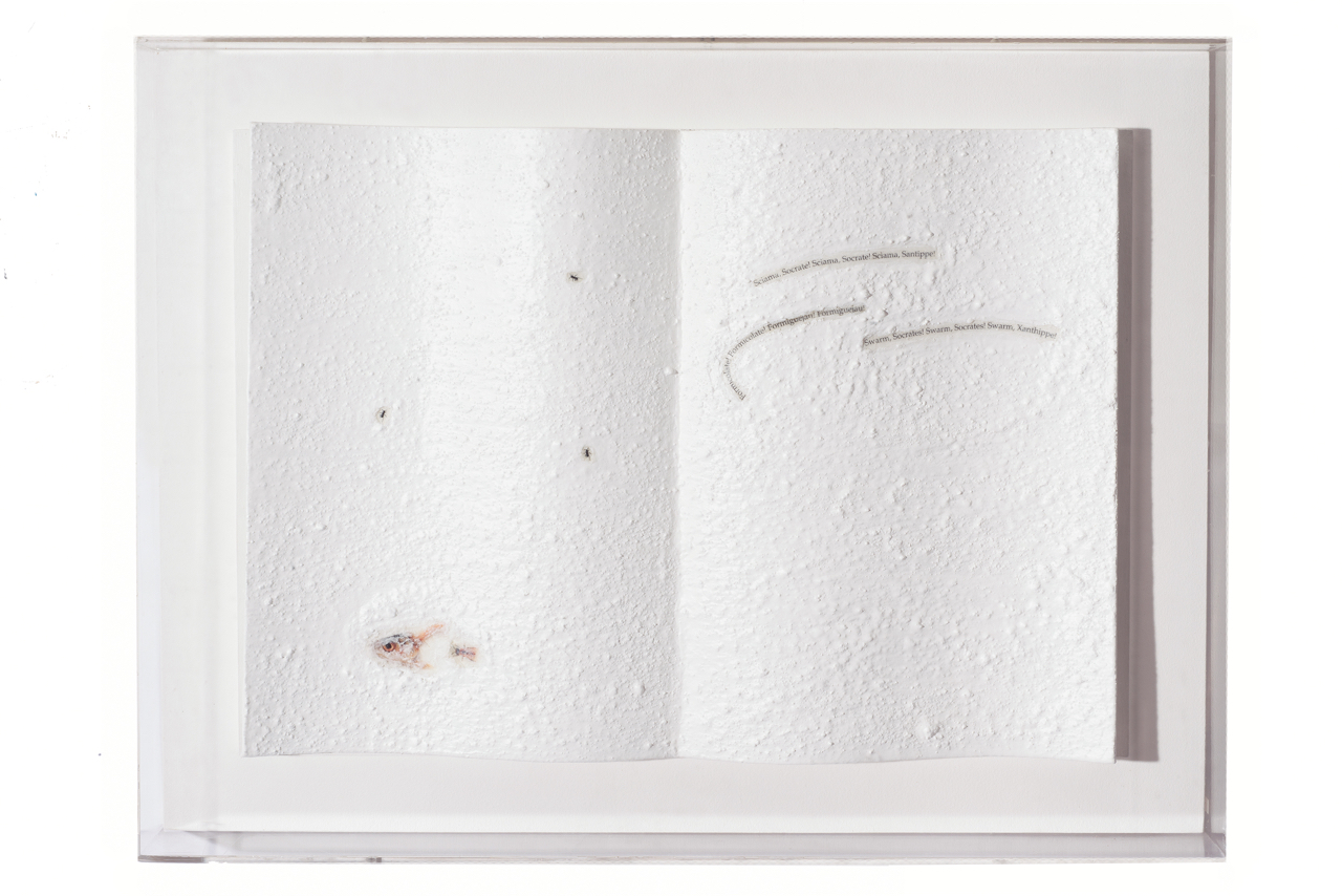 Emilio Isgrò (1937) Socrate Socrates Firmata e datata Emilio Isgrò 2003 sul retro Tecnica mista su legno in teca di plexiglas cm 54,5x72x8,5 (teca plexiglas) Eseguita nel 2003 Titolo sul retro Iscrizione sul retro: Archivio M 32