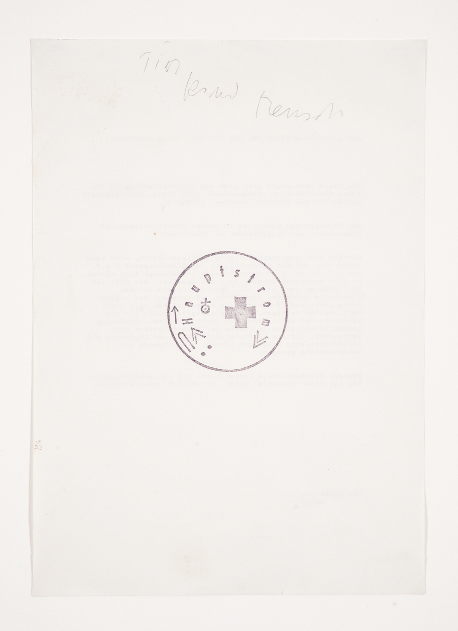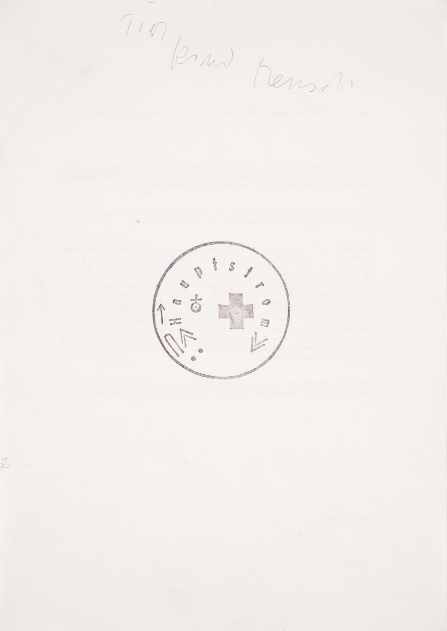 Joseph Beuys (1921-1986) Senza titolo (Der politische Kampf fur das Prinzip, freie Hochschule) Firmata Joseph Beuys sul retro Matita e timbro su carta cm 29,7x21 Provenienza: Galleria Lucio Amelio, Napoli (come da etichetta sul retro)