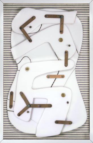CONRAD MARCA-RELLI Boston (Usa) 05/06/1913 - Parma 29/08/2000 R-SCP-5-69, 1969 applicazioni, collage e tecnica mista su tavola cm. 55,9x35,6; firma, titolo, anno ed etichette della Marisa Del Re Gallery (New York) al retro, opera registrata presso l'Archivio Marca-Relli come da dichiarazione della Galleria d'Arte Niccoli (PR) su foto.