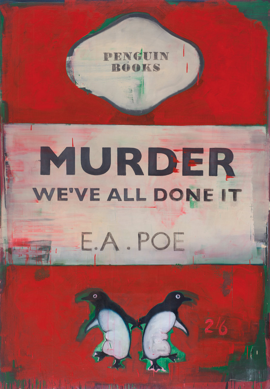 Harland Miller (1964) Murder - We've all done it Firmato Harland Miller sul retro Olio su tela cm 224x156x5 Eseguito nel 2010 Provenienza: White Cube, London; Galleria Marabini, Bologna; Collezione Ernesto Esposito, Napoli