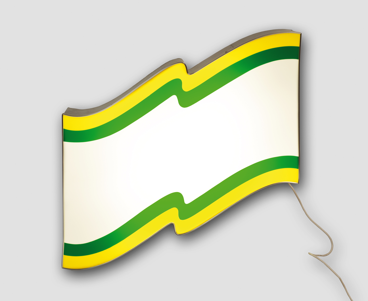 Daniel Pflumm (1968) Senza titolo Decalcomania in vinile su plexiglas in lightbox cm 75x105x15,5 Eseguita nel 1999 Edizione di 5 esemplari Provenienza: Galerie Neu, Berlino Si ringrazia Sophie Salamon della Galleria Neu, Berlino, per l'aiuto nella compilazione di questa scheda