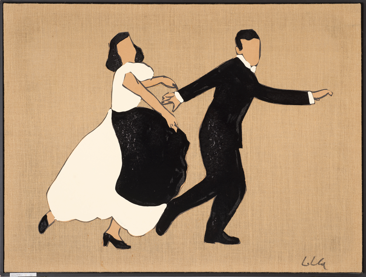 Marco Lodola (1955) Ballerini Firmato Lodola in basso a destra Smalti su cartone applicato su tela grezza cm 90x120 Fotografia dell'opera autenticata dall'artista Si ringrazia l'artista per aver confermato per e-mail l'autenticità dell'opera