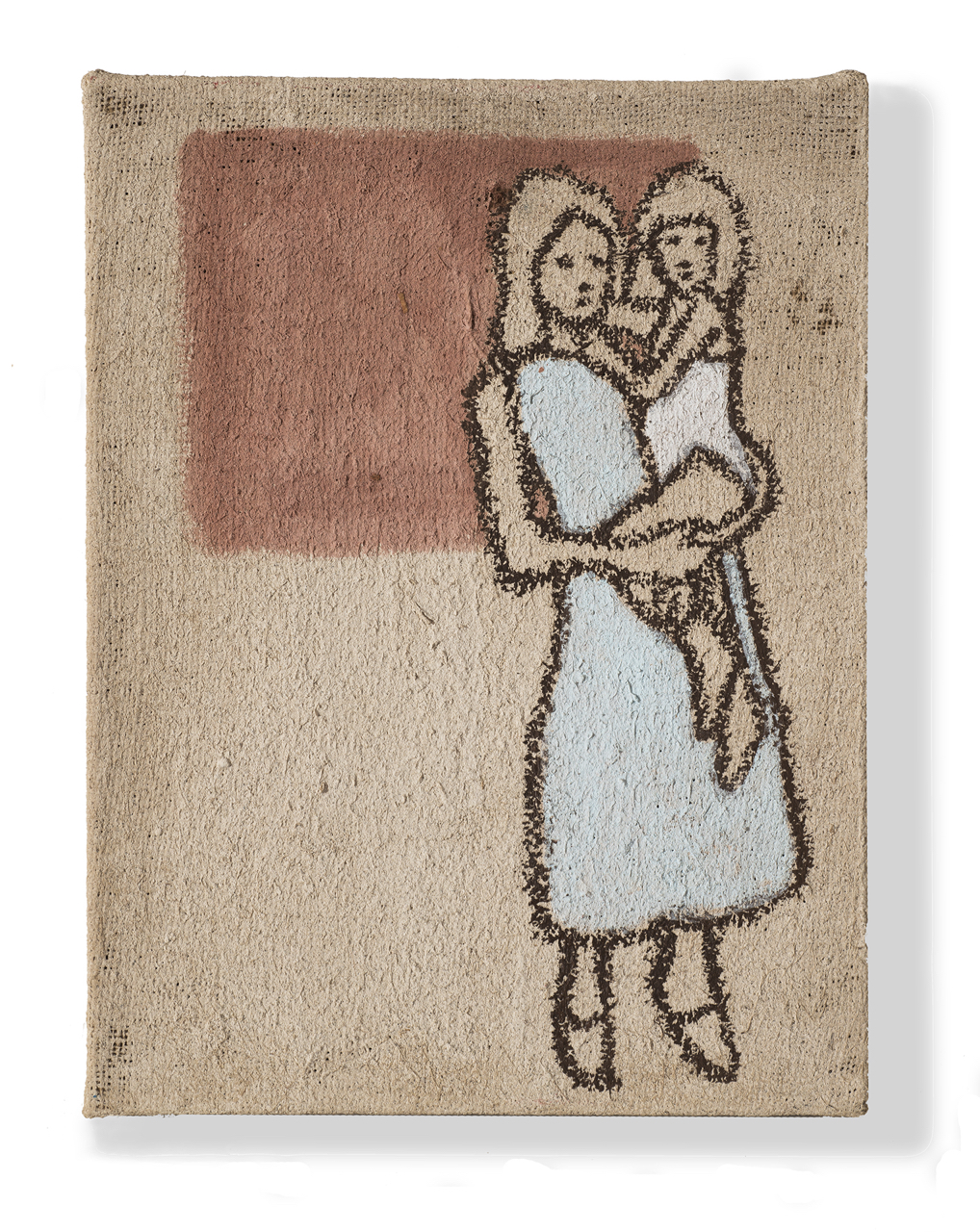 Valerio Berruti (1977) Madonna con bambino Firmato e datato Valerio Berruti 04 sul retro Olio e affresco su juta cm 40x30x4 Eseguito nel 2004 Firma e data di esecuzione sul retro Provenienza: Ermanno Tedeschi Gallery, Roma Si ringrazia l'artista per aver confermato per e-mail l'autenticità dell'opera