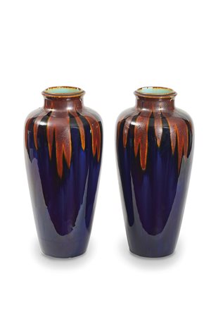 Coppia di vasi in ceramica invetriata "Orchies France" primi decenni del XX...