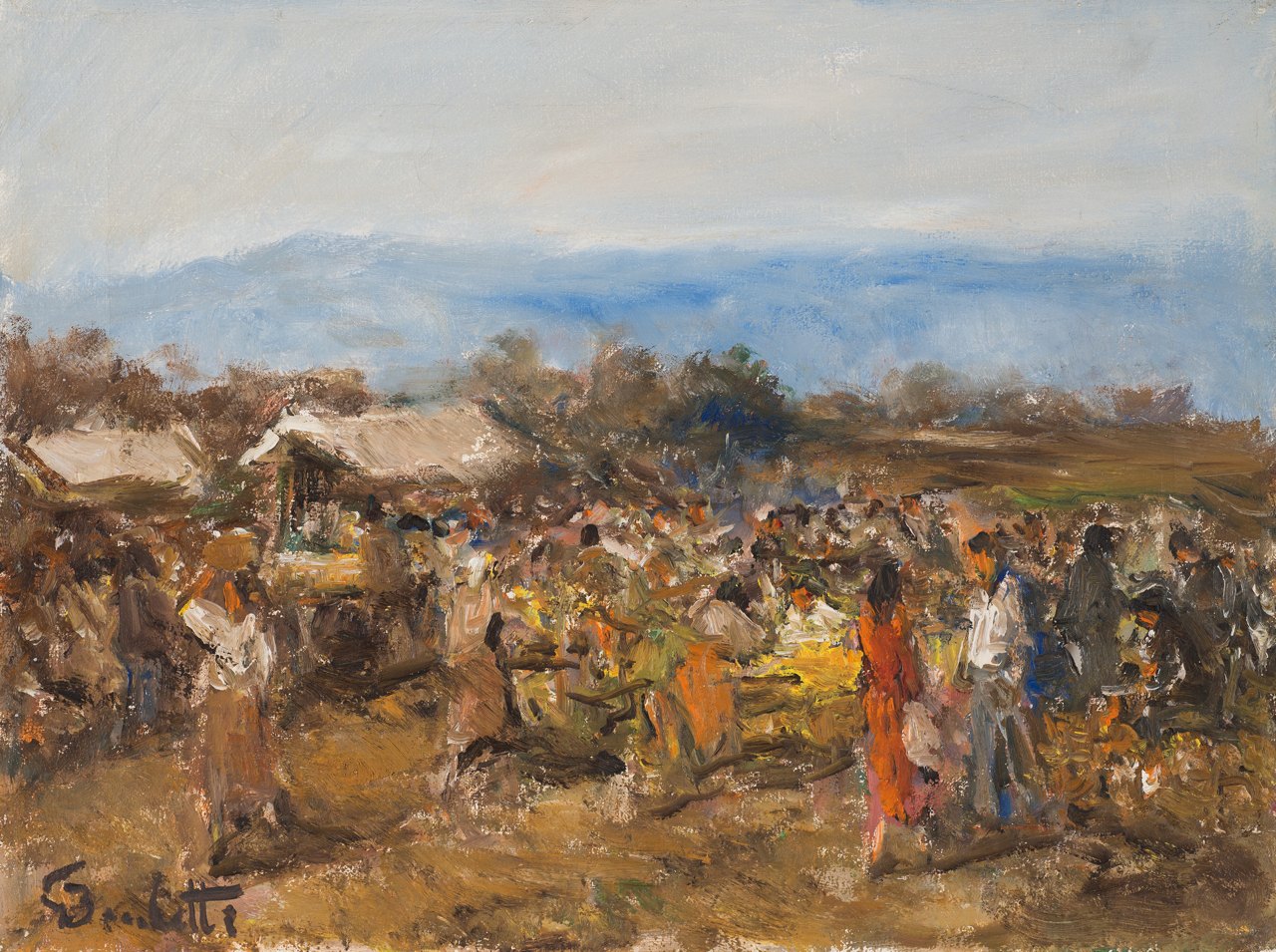 Gaetano Bocchetti (Napoli, 1860 - Napoli, 1949) Mercato olio su tela, cm 30x40 firmato Bocchetti in basso a sinistra