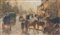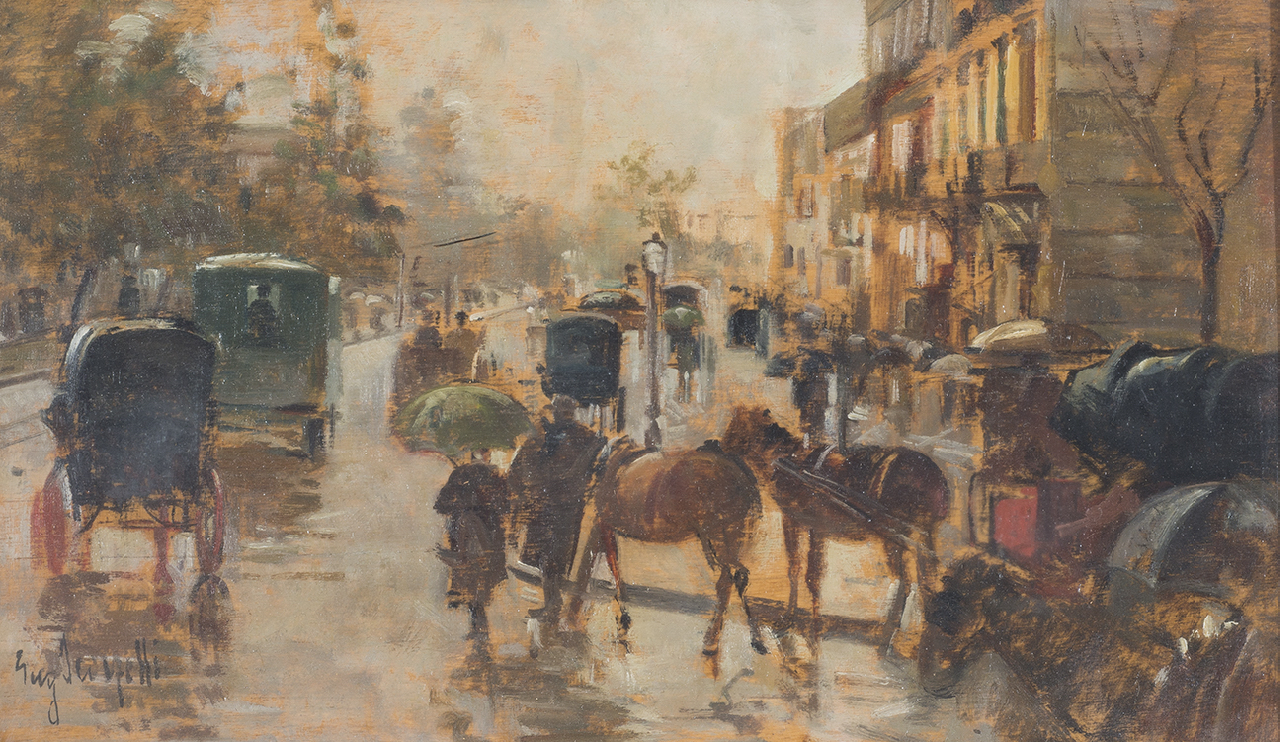 Eugenio Scorzelli ( Buenos Aires, 1885 - Firenze, 1958 ) Passeggiata in carrozza olio su tavola, cm 18x29 firmato Eugenio Scorzelli in basso a sinistra
