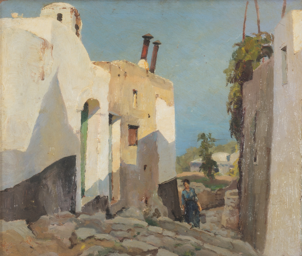 Ada Pratella ( Napoli, 1901 - 1929 ) Anacapri olio su tavola, cm 32x39 sul retro autentica con la seguente dicitura "Ada Pratella, Anacapri per autentica. Paolo Pratella"
