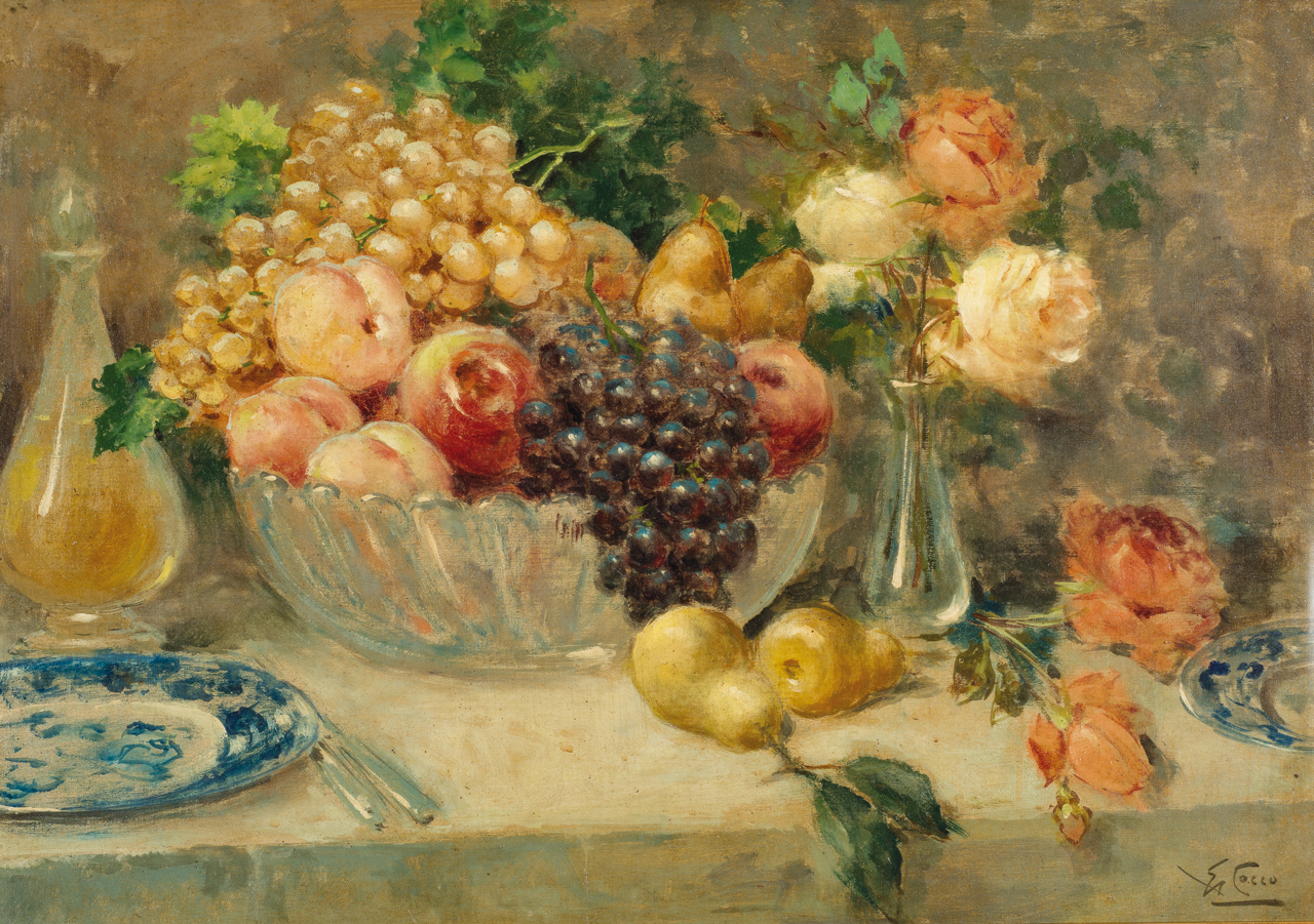 Lotto 121 | Giuseppe Alberto Cocco (Chieti, 1879 - Napoli, 1963) Fiori e frutti su un...