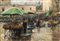 Giovanni Panza (Miseno, 1894 - 1989) Mercato olio su tavola, cm 20x29 firmato G. Panza in basso a destra