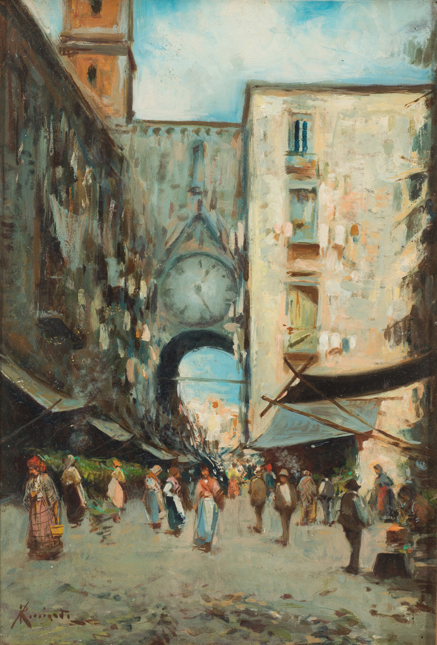 Oscar Ricciardi (Napoli, 1864 - 1935) Arco di Sant' Eligio olio su cartoncino, cm 34x24 firmato Ricciardi in basso a sinistra