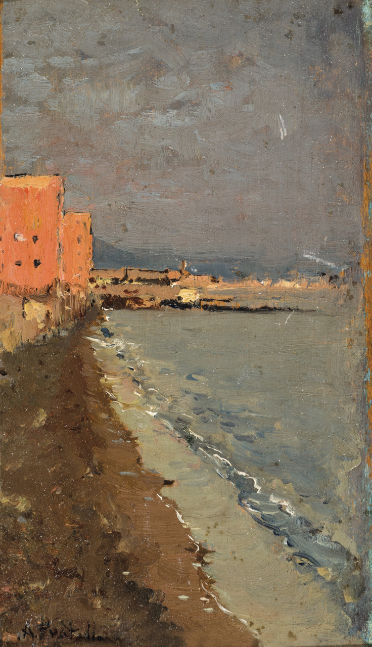 Attilio Pratella (Lugo di Romagna, 1856 -Napoli, 1949) Villa Guercia a Posillipo olio su tavola, cm 19x12 firmato A. Pratella in basso a sinistra