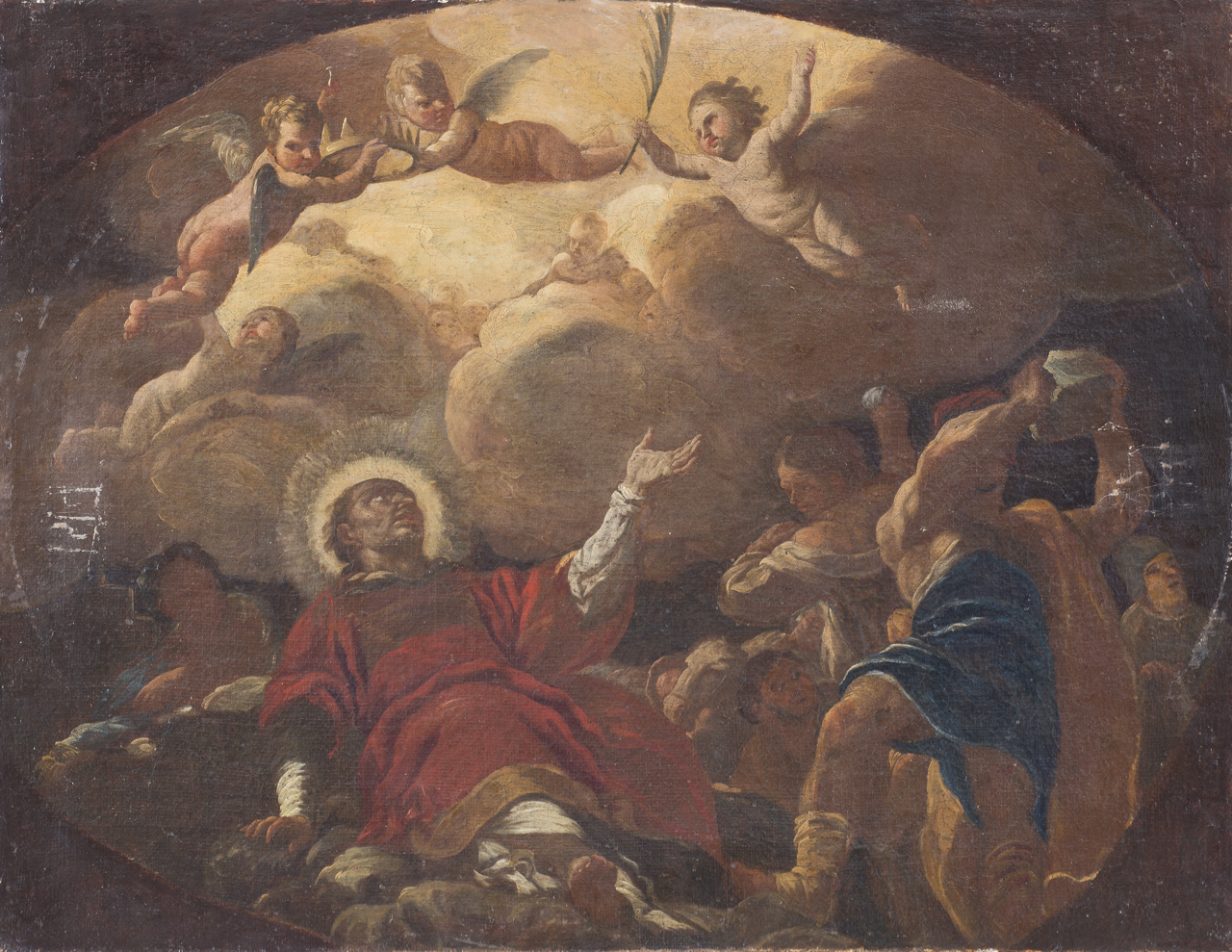 cerchia di Luca Giordano (Napoli, 1634 - 1705) Lapidazione di Santo Stefano olio su tela, cm 48x61