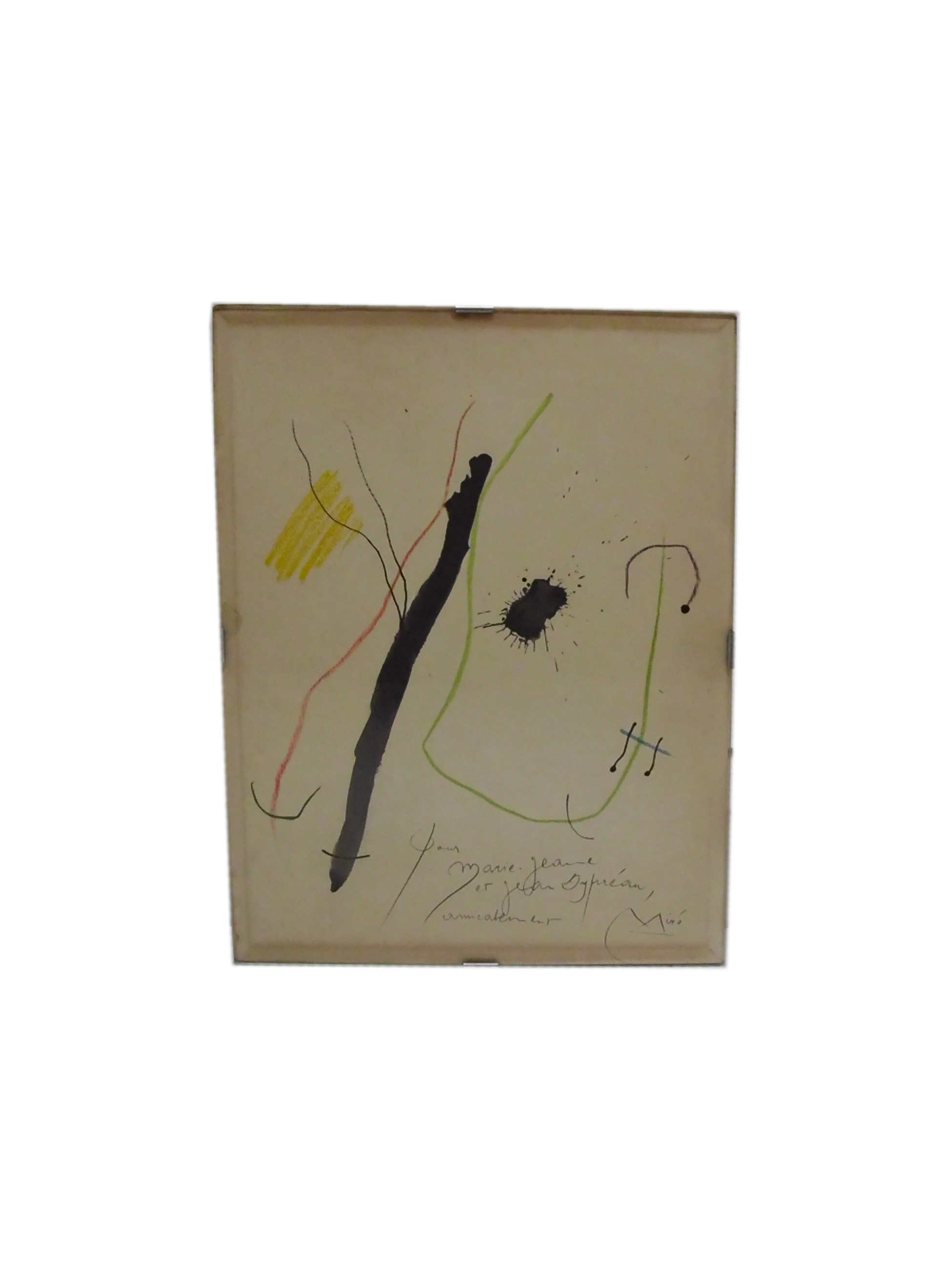 Joan Miró (1893-1983) Senza titolo riproduzione a colori degli acquerelli originali, cm 37,5x28 Firmato Miró in basso a destra Dedica in basso al centro