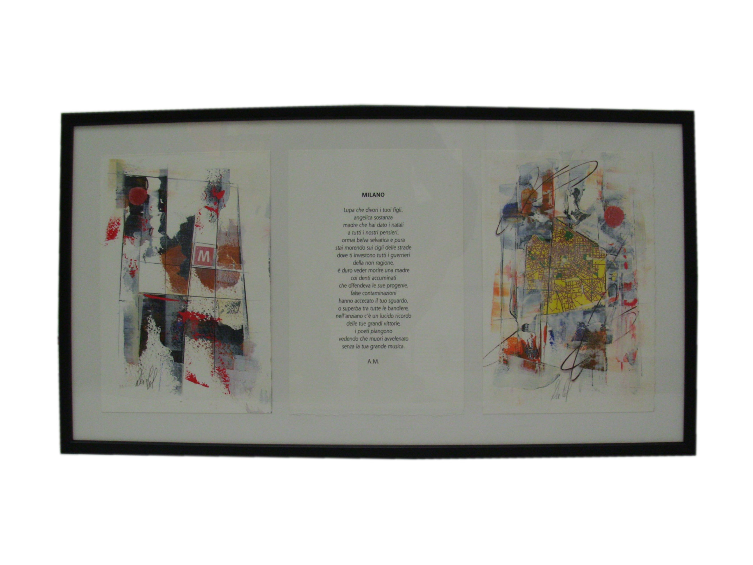 Walter Da Col (1942) Metropolitana Libro d'artista contenete una poesia di Alda Merini e due opere originalicon tecnica acrilicoa ed intervento collage su carta, cm Firmato Da Col in basso a sinistra sul primo foglio 26x18 cad. Collezione Manzoni, Milano Esposizioni: La carta è stanca lasciala bianca, presso L'Atelier d'arte di Cesare Crespi, 2007, Milano
