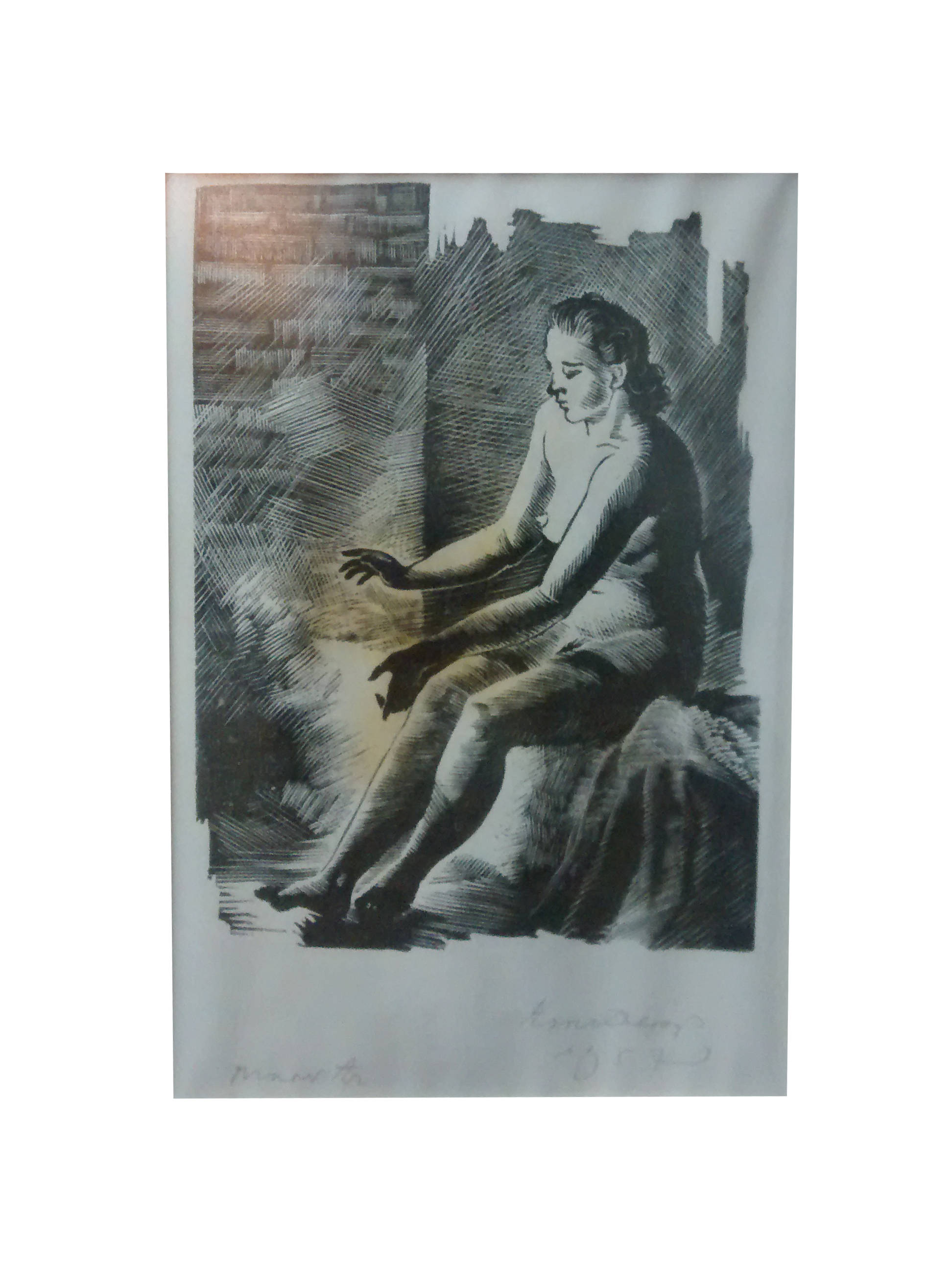 Anonimo (?) Nudo femminile litografia,cm 27x22 (foglio) Firma (non identificata) e datata '67 in basso a destra