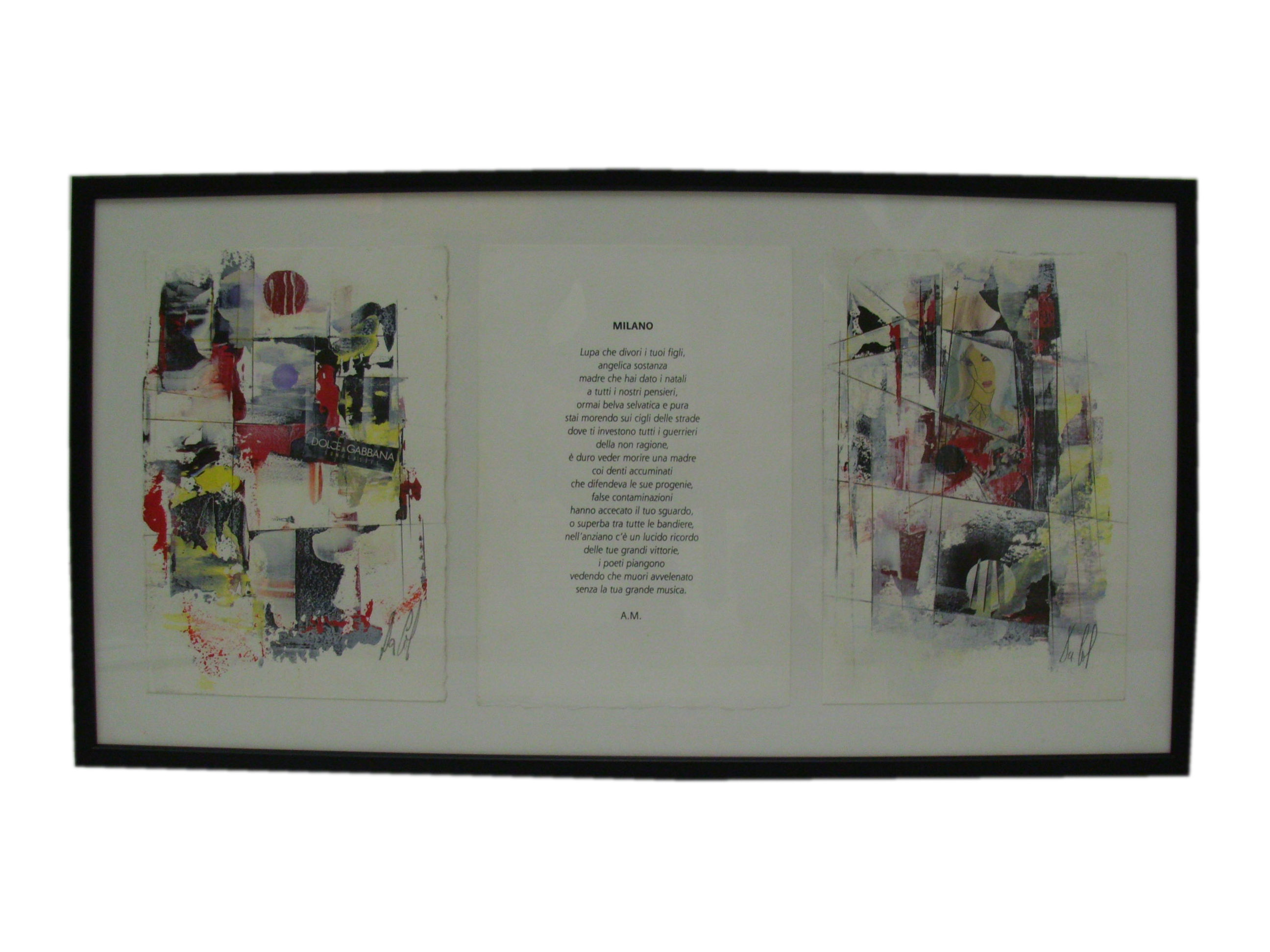 Walter Da Col (1942) Moda Libro d'artista contenete una poesia di Alda Merini e due opere originalicon tecnica acrilicoa ed intervento collage su carta Firmato Da Col in basso a destra sul primo foglio cm 26x18 Collezione Manzoni, Milano Esposizioni: La carta è stanca lasciala bianca, presso L'Atelier d'arte di Cesare Crespi, 2007, Milano