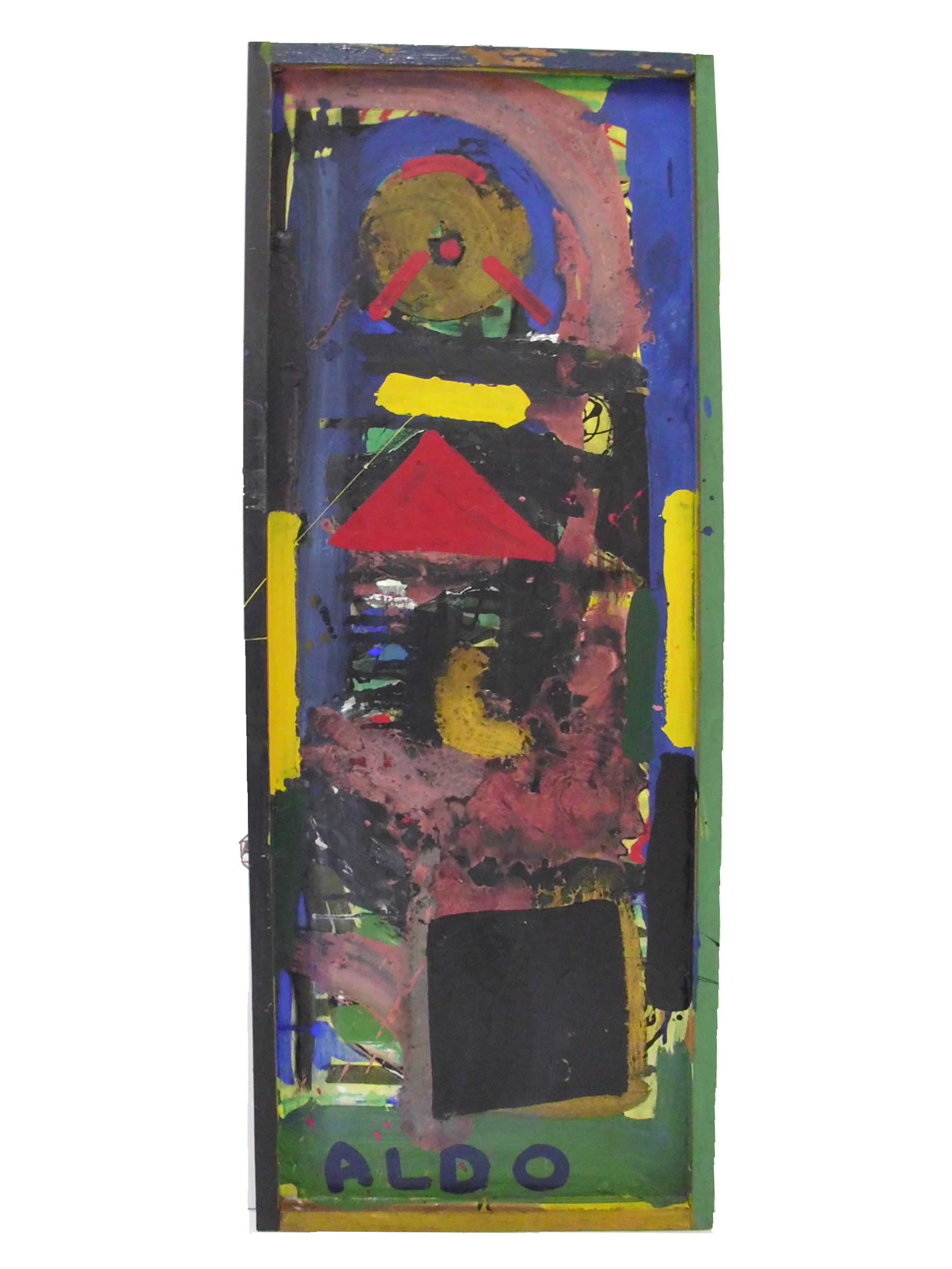 Aldo Gentilini (1911-1982) Senza titolo smalto su tavola, cm 109,5x40 Fitmata Aldo in basso al centro