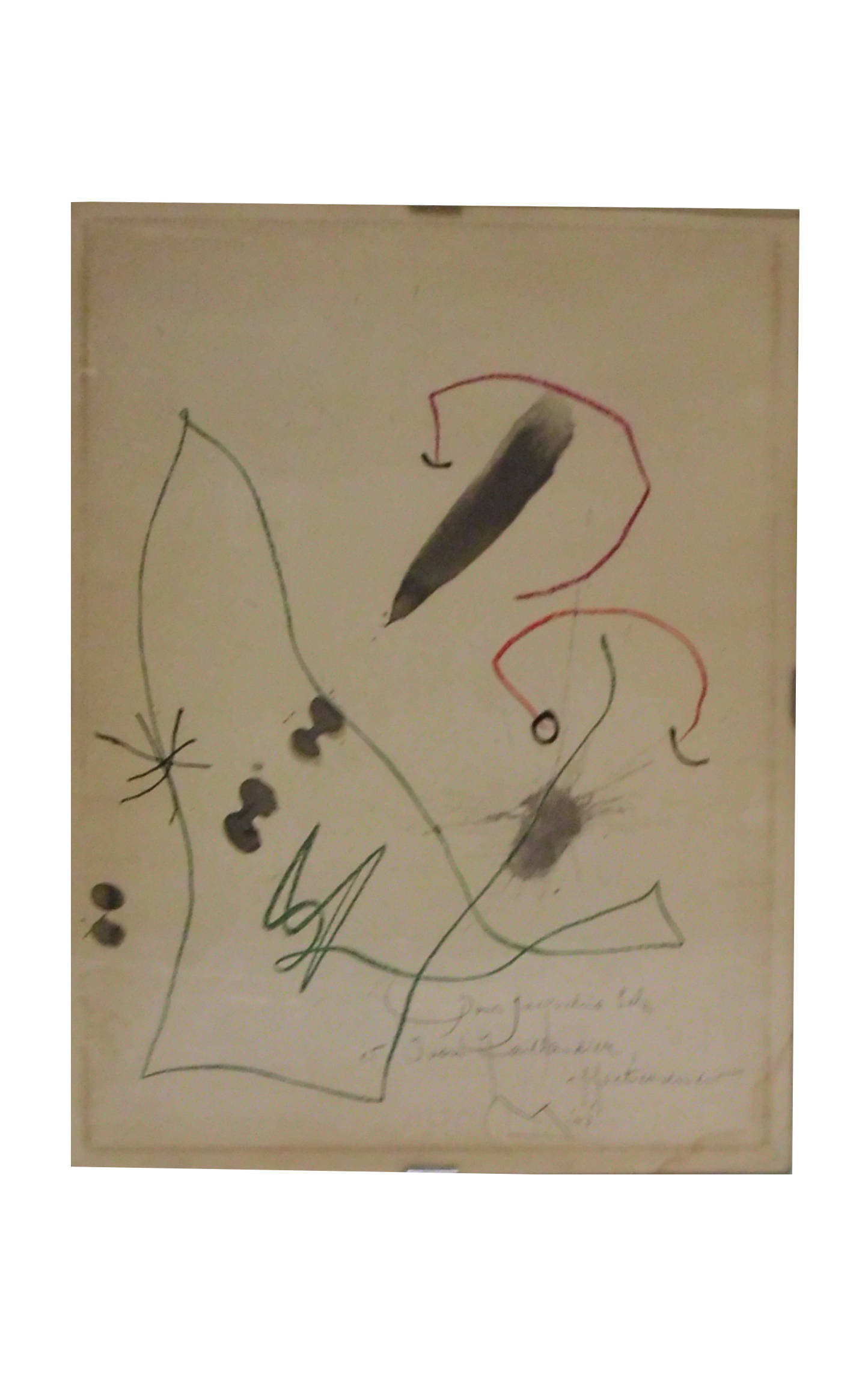 Joan Miró (1893-1983) Senza titolo riproduzione a colori degli acquerelli originali, cm 37,5x28 Firmato Miró in basso a destra Dedica in basso al centro