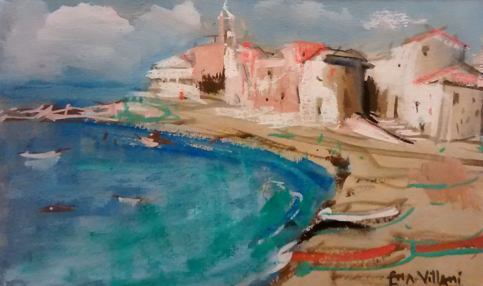 Ena Villani (1937) Marina olio su tavoletta, cm 25x35