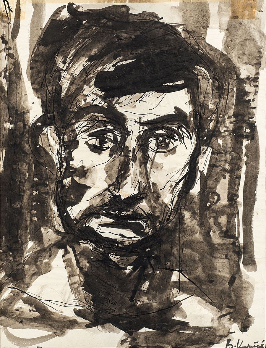 Boza Kovacevic (1934) Senza titolo (ritratto) Tecnica mista su carta Firmato...