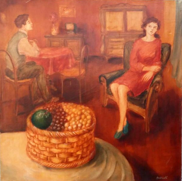 Mimmo Andriuoli "interno con frutta" olio su tela cm 50x50