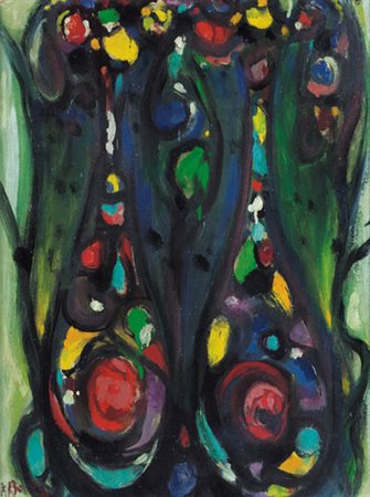 POMPEO BORRA Milano 28/01/1898 - Milano 05/11/1973 Senza titolo, 1966 olio su tela cm. 60x45, firma ed etichetta della Galleria d'Arte del Grattacielo (MI) al retro, opera registrata presso l'Archivio Fotografico Generale Pompeo Borra come da dichiarazione del nipote Filippo Borra su foto.